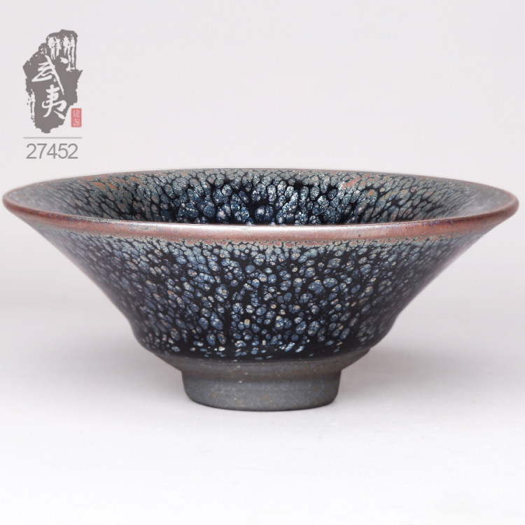 中国宋代斗茶之风盛行,建窑茶盏名贵品种兔毫,油滴(鹧鸪斑),曜变釉色绀黑,釉面斑纹奇妙自然备受茶家青睐,北宋帝皇把它作为御前隆重赐茶专用茶盏。历史上许多文人墨客也和建盏结下不解之缘。建盏珍品 烧制难度极大,数量十分稀少,是驰名中外的稀世宝物,历来为收藏家所珍爱,数件绝品被日本藏为国宝。