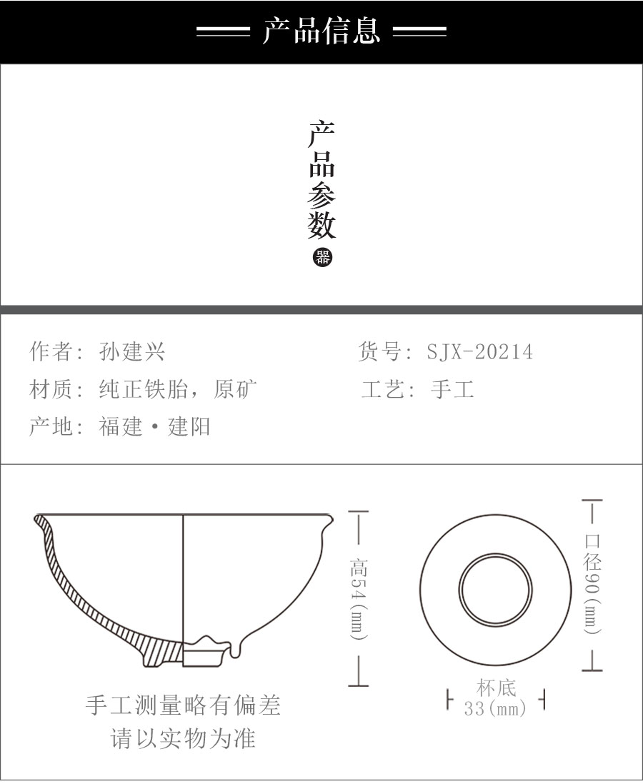 三、由于手工制品以及烧制过程中产生的窑变带来的特殊性,同款作品也有可能会在外观、色泽、尺寸和重量存在轻微差异,请以实际收到的作品为准;